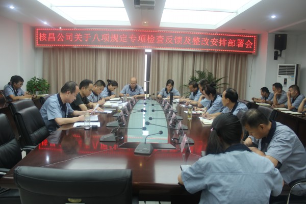 為深入貫徹中央全面從嚴治黨要求,落實中央八項規(guī)定精神,根據(jù)集團公司落實八項規(guī)定精神專項檢查情況通報會會議精神,結(jié)合公司實際,2018年8月9日,核昌公司于小會議室召開關(guān)于八項規(guī)...
