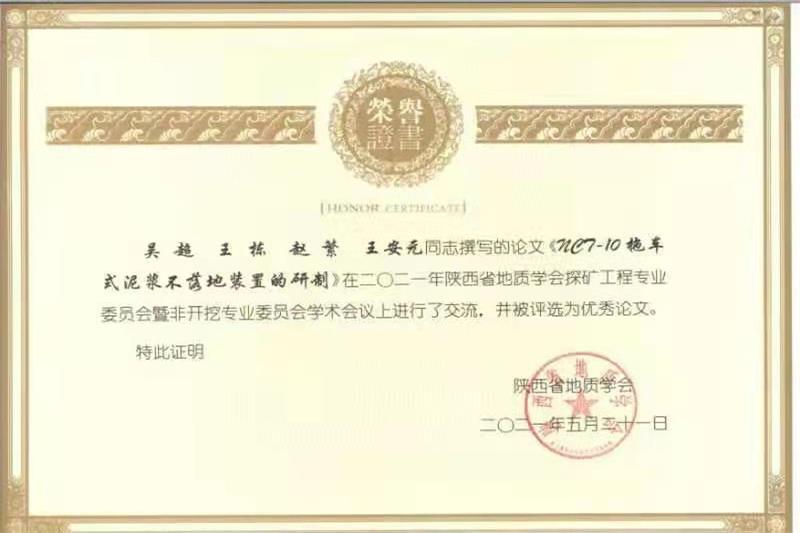 最后經過與會專家及委員評比推薦,會議共表彰了27篇優(yōu)秀論文及18名中青年探礦科技獎獲獎者,其中核昌公司羅詩偉同志榮獲了陜西省地質學會第十屆中青年探礦科技獎、吳超、王安元等同志撰寫的《NCT-10拖車式泥漿不落地裝置的研制》和《HXY-1600智能型拖車鉆機的應用分析》兩篇論文獲得優(yōu)秀論文獎。