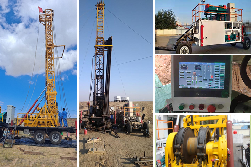 HXY-1600型(機(jī)械動(dòng)力頭長(zhǎng)行程給進(jìn))拖車鉆機(jī)和HXY-2000智能鉆探機(jī)組,是一款用于砂巖型鈾礦地質(zhì)勘探和開采、機(jī)動(dòng)性好、卷揚(yáng)機(jī)提升力更強(qiáng)、鉆探深度更深的新產(chǎn)品。該設(shè)備與國內(nèi)外同類鉆機(jī)相比,在進(jìn)尺速度、上下鉆速度、孔底壓力控制、鉆進(jìn)參數(shù)顯示和控制方面具有顯著的特點(diǎn),杜絕了原鉆機(jī)鉆進(jìn)能力不足、鉆塔承載能力小、鉆塔高度低、輔助工作時(shí)間長(zhǎng)、卷揚(yáng)機(jī)排繩困難、卷揚(yáng)機(jī)操縱費(fèi)力、鉆塔最大負(fù)荷無法限定等缺點(diǎn),得到了中核集團(tuán)208大隊(duì)、243大隊(duì)、216大隊(duì)、湖南中核勘探有限責(zé)任公司、內(nèi)蒙煤田地質(zhì)局等單位的一致認(rèn)可。